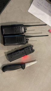 A los sujetos señalados les fueron localizados dos radios portátiles, un objeto punzocortante y un artefacto eléctrico, el cual, a decir de las personas auxiliadas, fue empleado para amagarles.