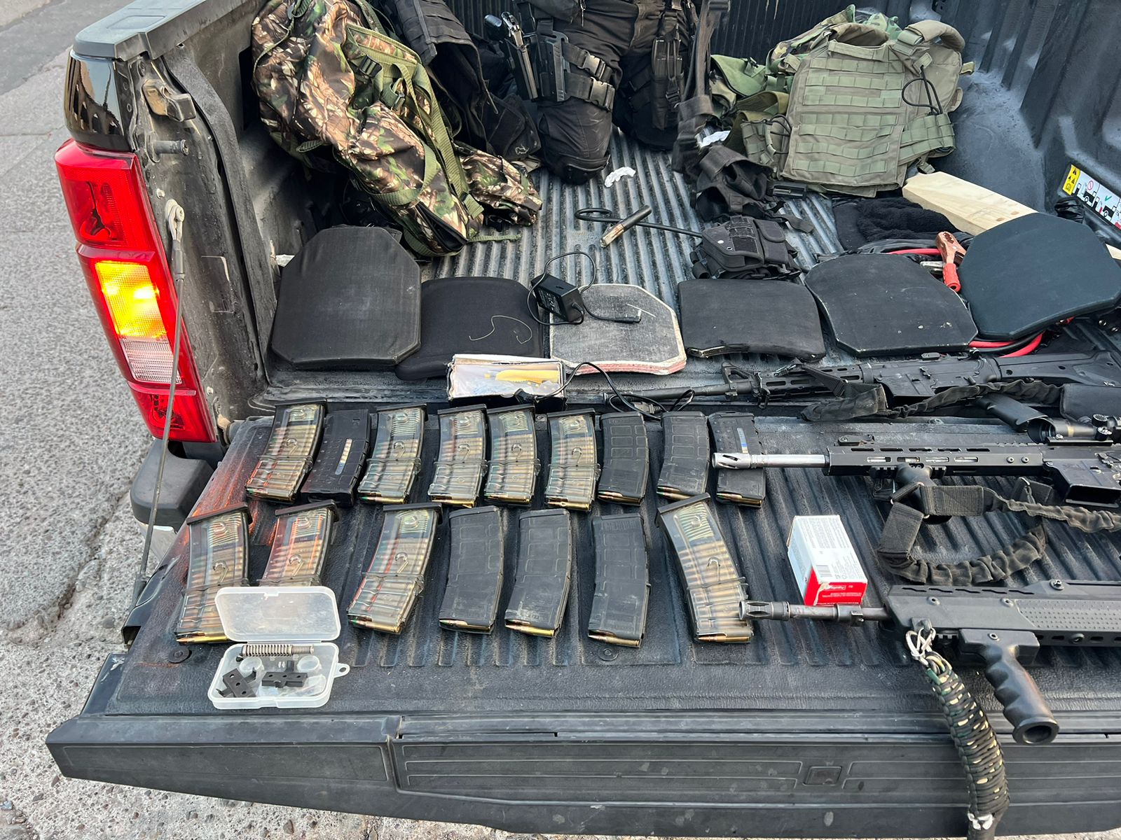 La carrera terminó cuando la camioneta se los sicarios se impactó contra una finca, y el resultado fue la detención de un hombre originario de Michoacán identificado como Rogelio de 44 años de edad, así como el aseguramiento de tres armas largas, diversos cargadores con tiros útiles, así como placas y chalecos antibalas.