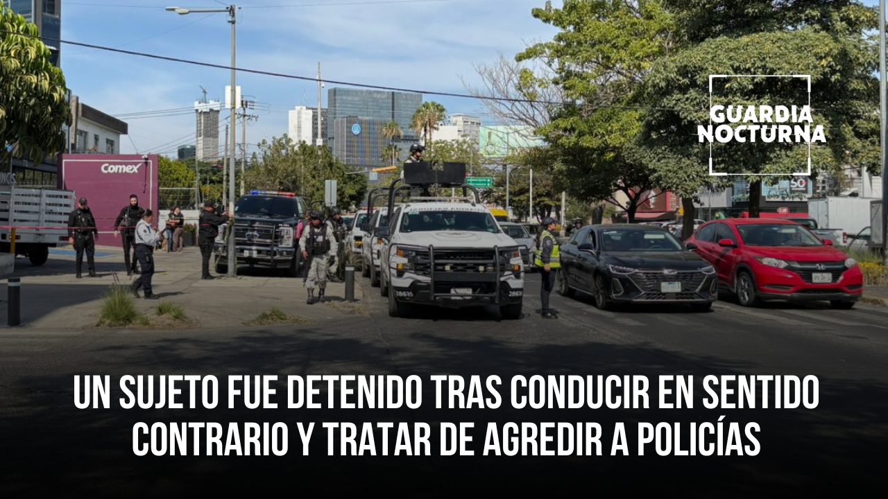 Una persecución policial iniciada en las inmediaciones de Casa Jalisco concluyó con la detención de un hombre la tarde de este martes, luego de que presuntamente condujera un vehículo en sentido contrario y pusiera en a elementos de seguridad. De acuerdo con lo informado por el comisario general de la Policía Estatal de Jalisco, Juan […]