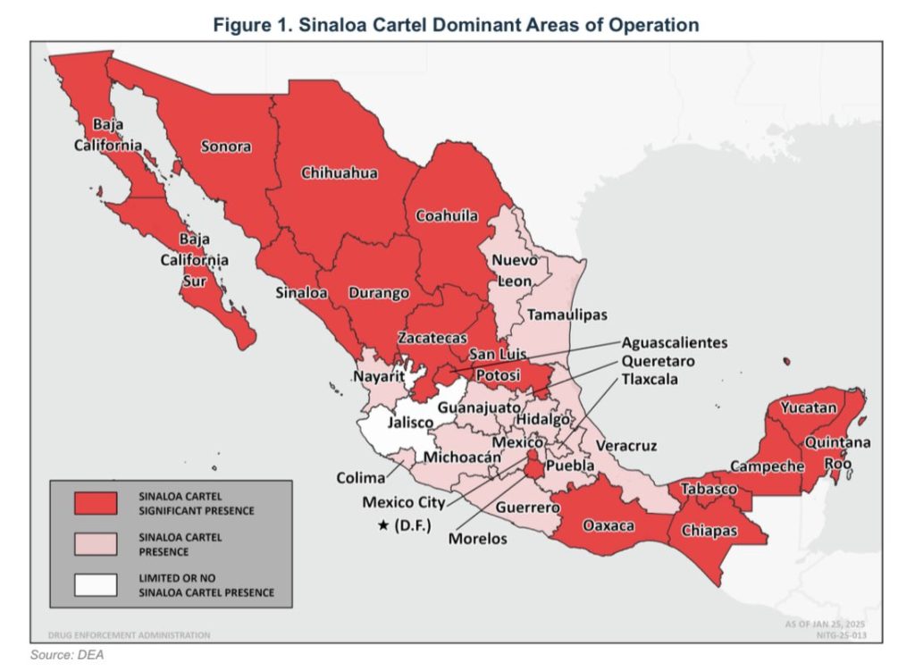 El aparato de distribución de drogas generado con la participación de diferentes personajes vinculados al crimen abarca múltiples regiones de los dos países, en donde su estrategia ha trazado una ruta ya reconocida por la DEA, sin manifestar cuáles acciones tomaría en consecuencia para contrarrestar el tráfico por tierra a su país.