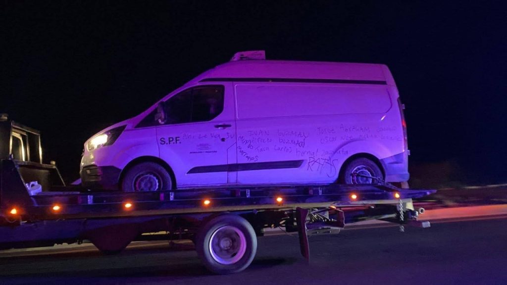 Todas las víctimas eran hombres y presentaron indicios de heridas por proyectil de arma de fuego. De acuerdo con información e imágenes de fuentes locales, dicho vehículo es tipo van e incluía mensajes escritos en la zona exterior así como una manta que las autoridades retiraron inmediatamente.