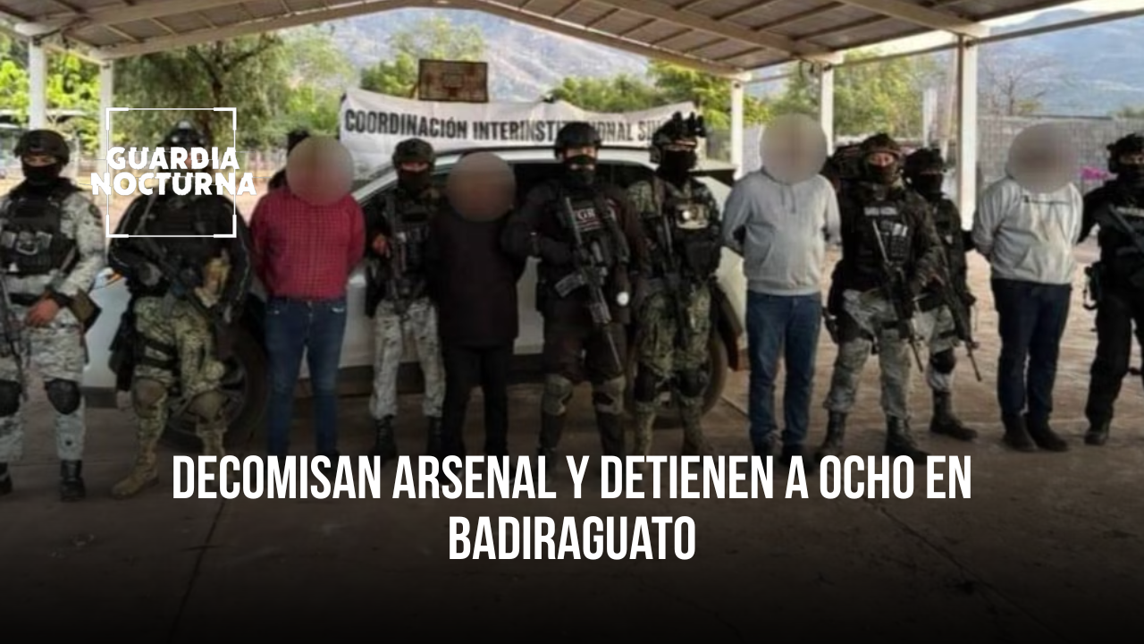 En operativos coordinados realizados el 19 de enero de 2026 en el municipio de Badiraguato, Sinaloa, fuerzas federales y estatales detuvieron a ocho civiles y aseguraron un importante arsenal, así como seis vehículos con reporte de robo, informaron autoridades de seguridad. Las acciones se llevaron a cabo en los poblados de Rincón de los Monzón […]