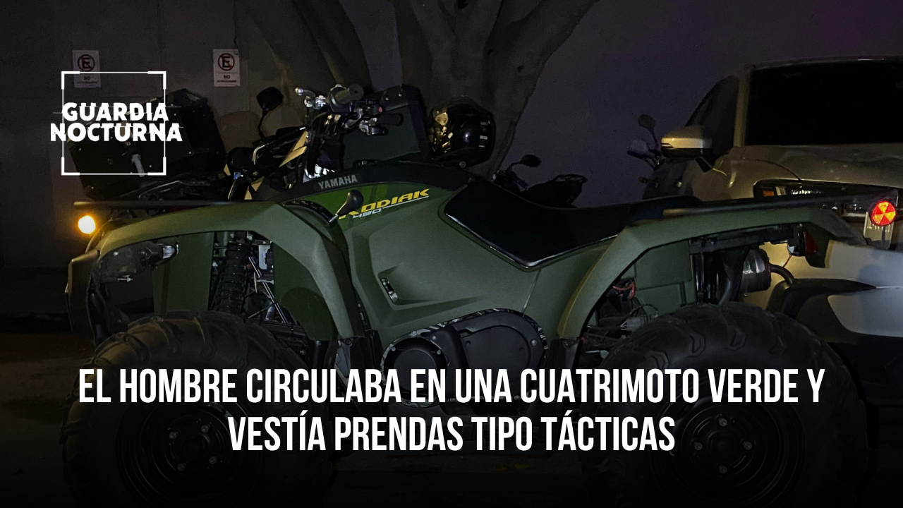 El individuo circulaba en una cuatrimoto verde, vestía prendas tipo tácticas con supuestos logotipos de una institución del Estado de México y llevaba consigo lo que parecía ser un arma de fuego. Al realizarle una inspección, le aseguraron una pistola calibre 9 milímetros y un cargador con 10 cartuchos útiles.