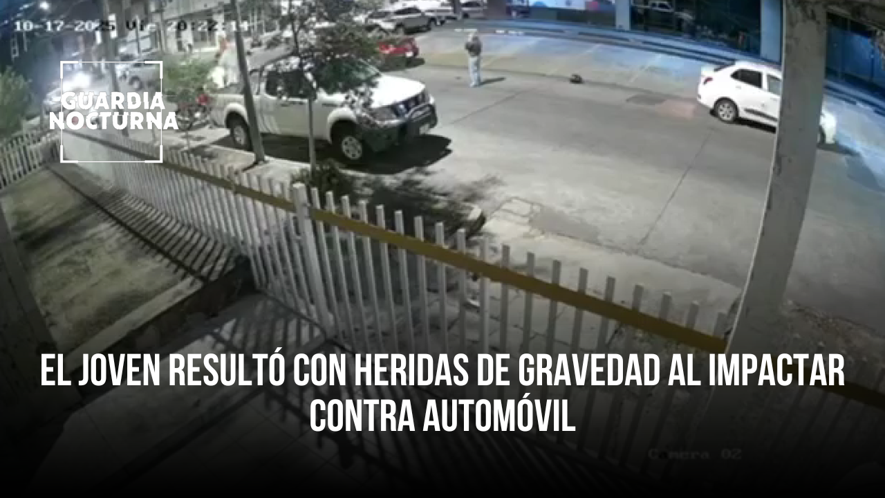 Un joven de 21 años de edad quedó en estado grave, tras un accidente vial ocurrido la noche de este viernes en la colonia Ladrón de Guevara de Guadalajara. El motociclista impactó violentamente contra un vehículo particular de color blanco en el cruce de las calles Aurelio Luis Gallardo y General Eulogio Parra.
