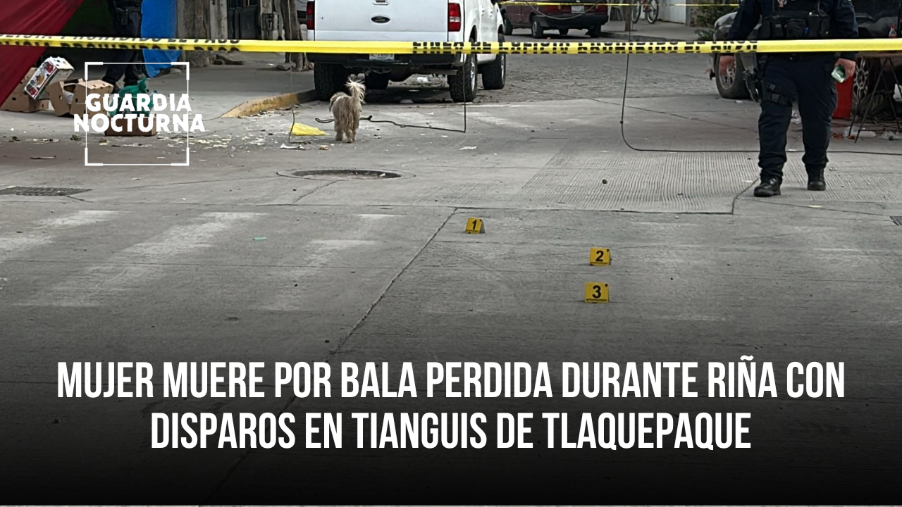 Una mujer de aproximadamente 40 años murió la tarde de este viernes tras ser alcanzada por una bala perdida durante una riña registrada en un tianguis de la colonia El Campesino, en Tlaquepaque.