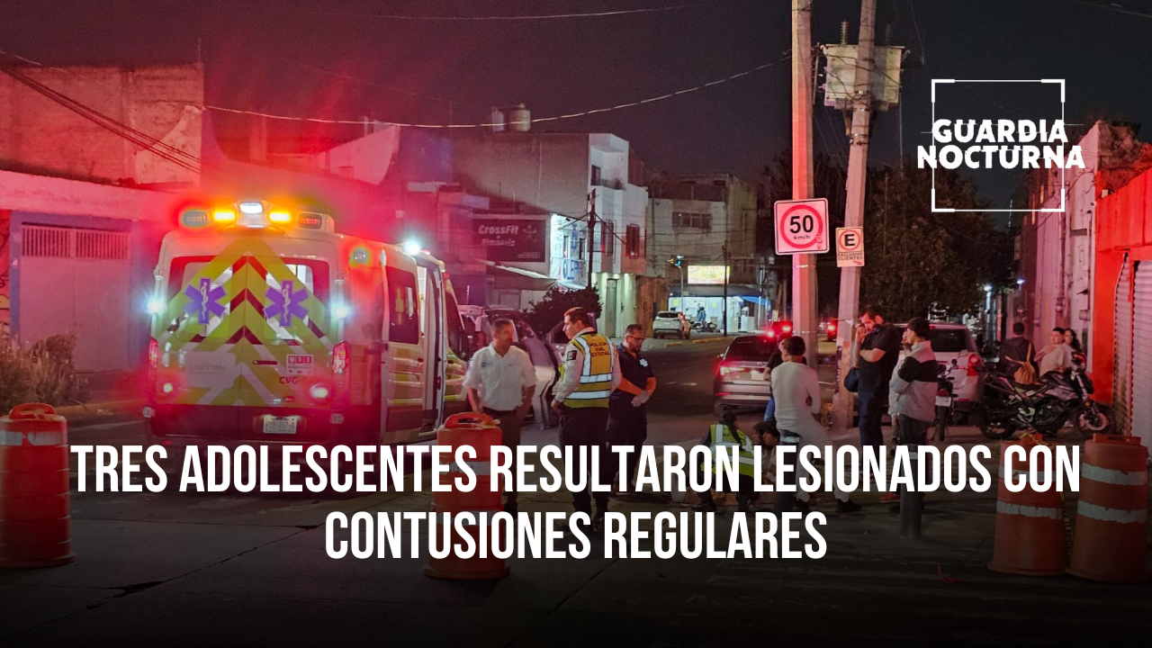 Tras la colisión, los menores salieron proyectados y una de las motocicletas quedó prensada bajo el vehículo. El saldo es de tres adolescentes lesionados con contusiones regulares, quienes están siendo valorados por servicios médicos municipales.