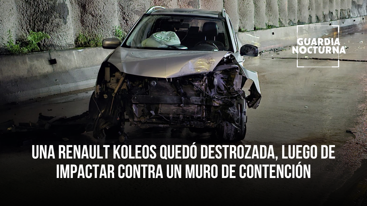 El incidente involucró al conductor de unos 28 años de edad que viajaba a bordo de una camioneta Renault Koleos. El vehículo sufrió un destrozo total en la parte frontal tras impactarse contra el muro de contención.