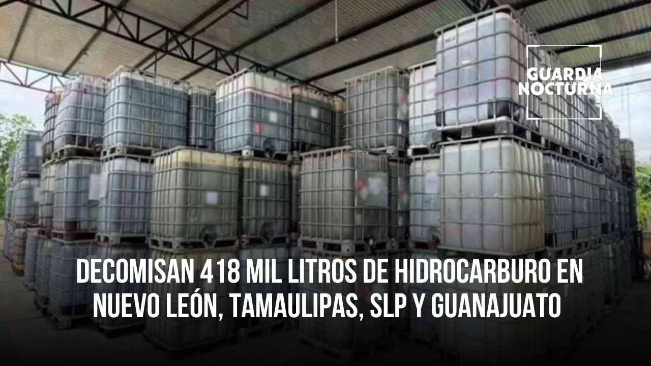 Un despliegue de fuerzas federales en el norte y centro del país resultó en el decomiso de más de 418 mil litros de combustible presuntamente robado, así como en la localización de diversos centros clandestinos de almacenamiento. De acuerdo con el Gabinete de Seguridad, los operativos se realizaron entre el 10 y el 12 de octubre en Nuevo León, Tamaulipas, San Luis Potosí y Guanajuato, como parte de la estrategia nacional para combatir el robo de hidrocarburos. En el municipio de El Carmen, Nuevo León, autoridades federales llevaron a cabo un cateo en un inmueble donde fueron detenidas cinco personas.