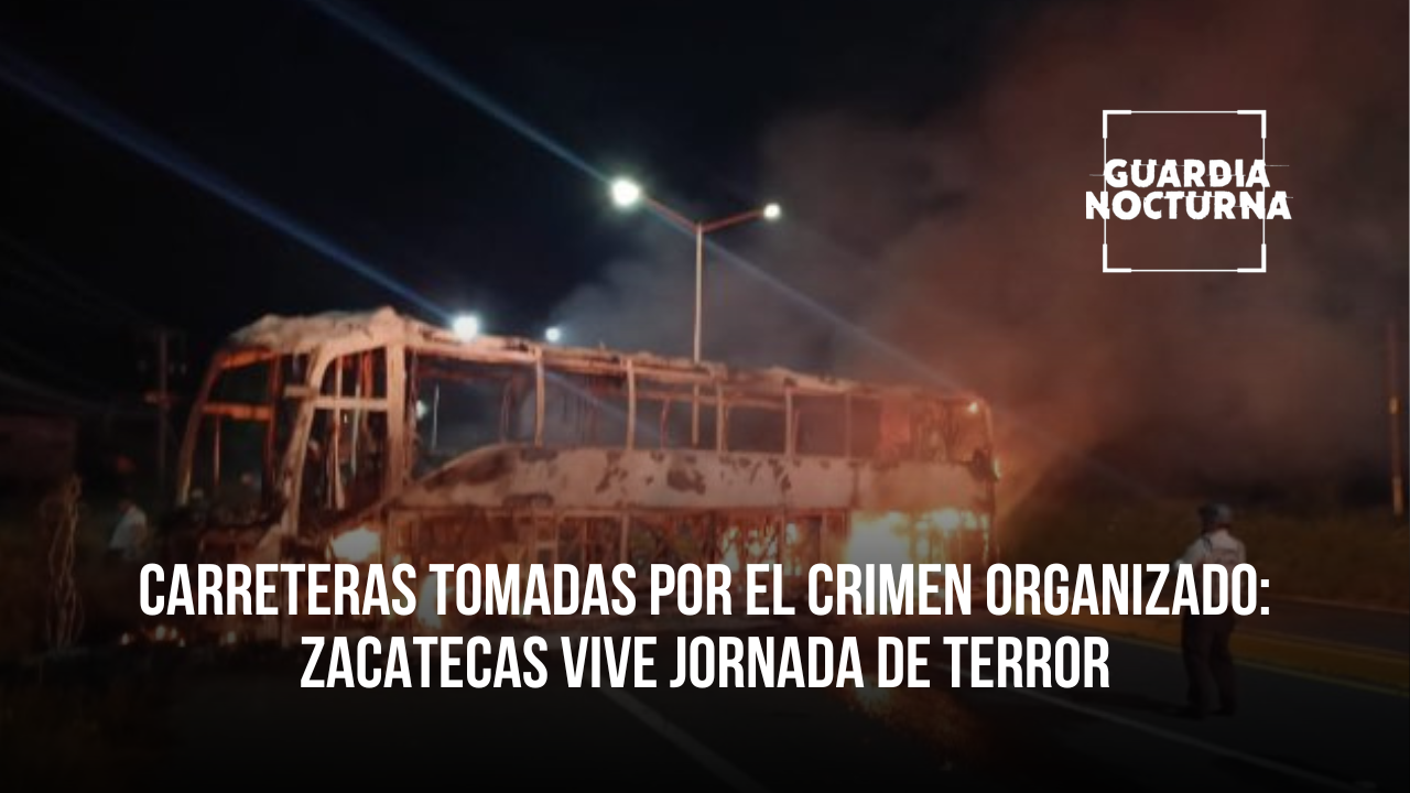 Los hechos incluyeron la quema de vehículos, camiones atravesados en plena vía y la dispersión de ponchallantas, lo que complicó la movilidad en tramos clave como las carreteras federales 45, 49 y 54, además de los caminos Zacatecas-Durango, Zacatecas-Víctor Rosales y la ruta hacia Aguascalientes.