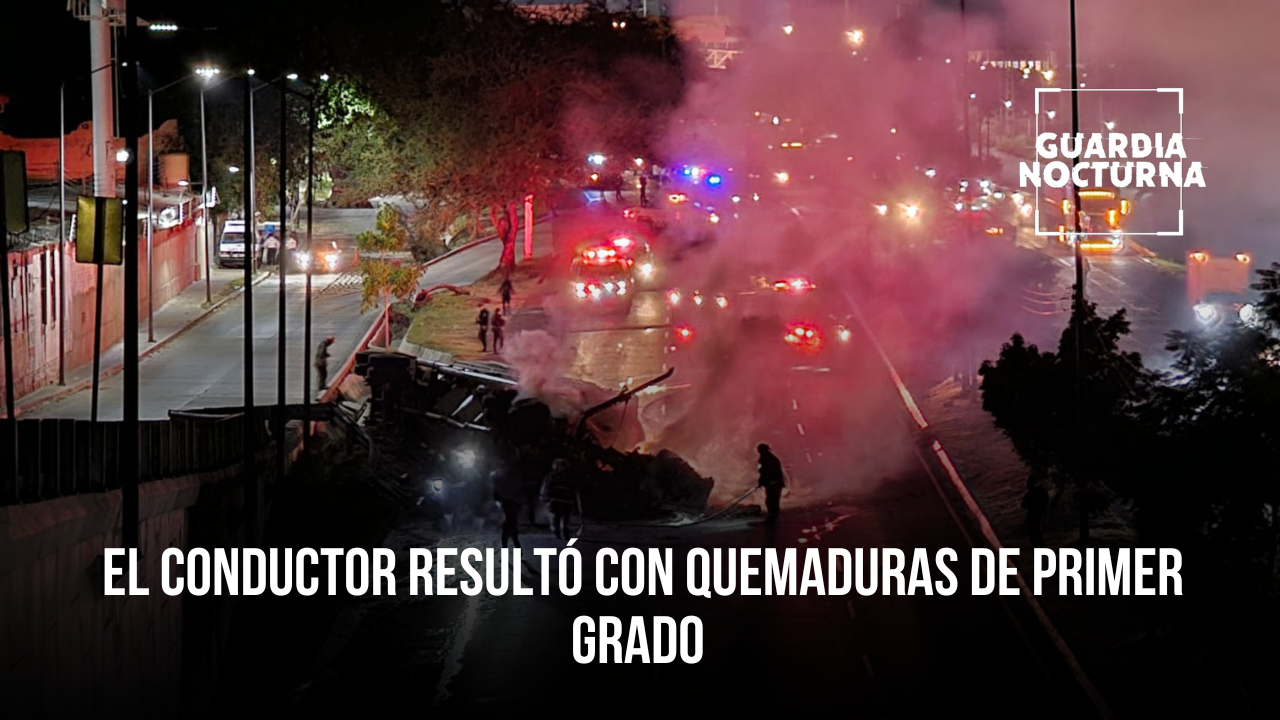 De acuerdo con autoridades, la unidad se salió de los carriles laterales y cayó sobre los centrales, quedando volcada sobre su costado. El impacto provocó que el contenido comenzara a arder, generando una intensa columna de humo visible desde varios puntos de la ciudad.