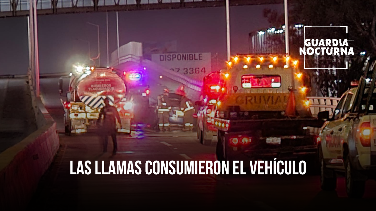 Un automóvil Honda Civic terminó envuelto en llamas, resultando en pérdida total, en el cruce de Periférico Sur y Vía Manzanillo, en la colonia La Llave de Tlaquepaque.