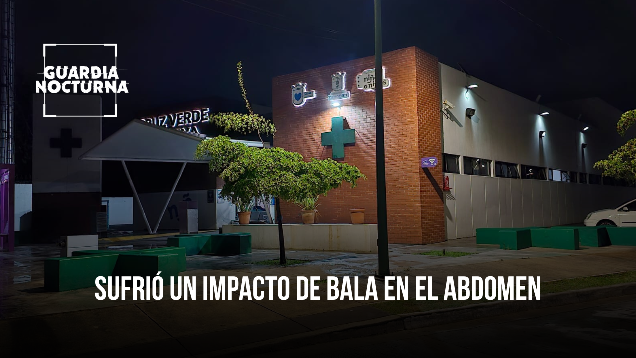 Un joven de 27 años de edad fue trasladado a un puesto de socorros tras resultar lesionado por un impacto de bala en el abdomen. El paciente fue ingresado en un estado grave de salud.