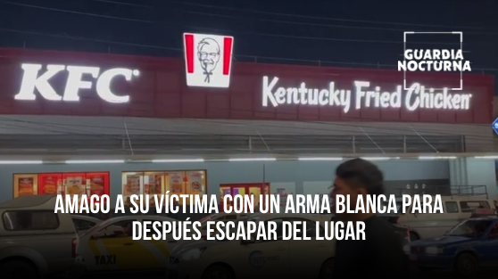 Fue dentro de las instalaciones del KFC, que el ladrón amagó a una mujer con un arma blanca y la despojó de dos celulares. Tras consumar él asaltó, esta «blanca palomita» se dio a la fuga. Mientras tanto la víctima, realizó un reporte a elementos policíacos que se encontraban en la zona, por lo que de inmediato se informó a los oficiales que se encargan de resguardar la seguridad durante El Buen Fin.