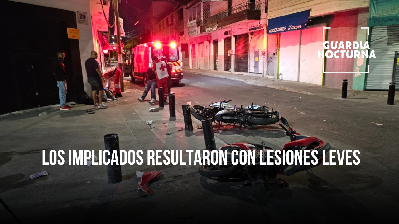 Un accidente que involucró a dos motocicletas tuvo lugar en la colonia San Juan de Dios de Guadalajara. El percance ocurrió sobre el cruce de las calles Mariano Jiménez y Obregón.