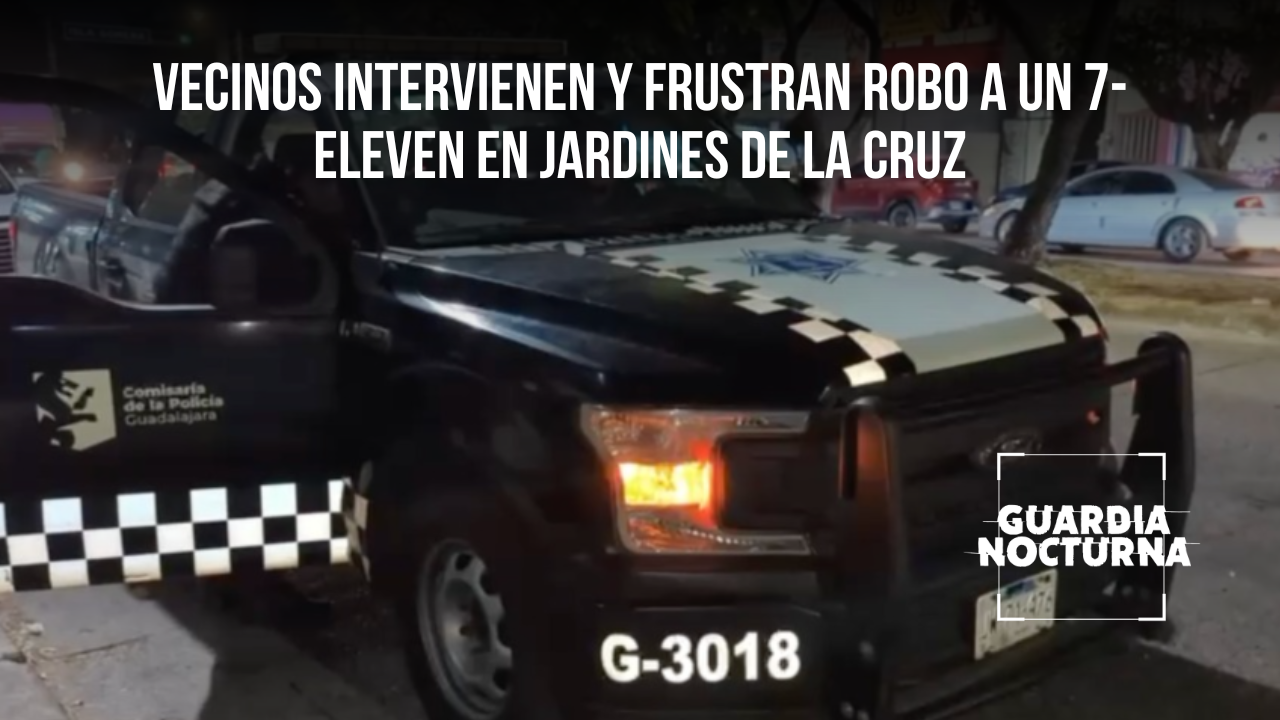 La noche de este jueves, un intento de robo en un 7-Eleven ubicado en las calles Isla Raza e Isla Gomera, en la colonia Jardines de la Cruz, terminó siendo frustrado gracias a la intervención conjunta de vecinos y elementos de la Policía de Guadalajara.