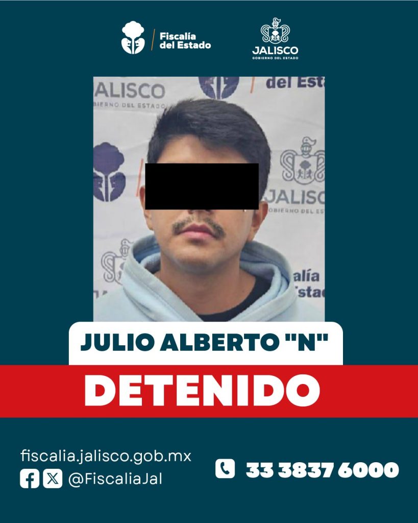 Según las investigaciones, Julio Alberto “N”, junto con José Manuel “N” —actualmente vinculado a proceso y en prisión preventiva oficiosa— y otros sujetos aún no detenidos, habría descendido de tres vehículos para agredir a golpes y con distintos objetos a tres jóvenes que salían de una serenata dedicada a jugadores del Club Guadalajara en un hotel de Zapopan.