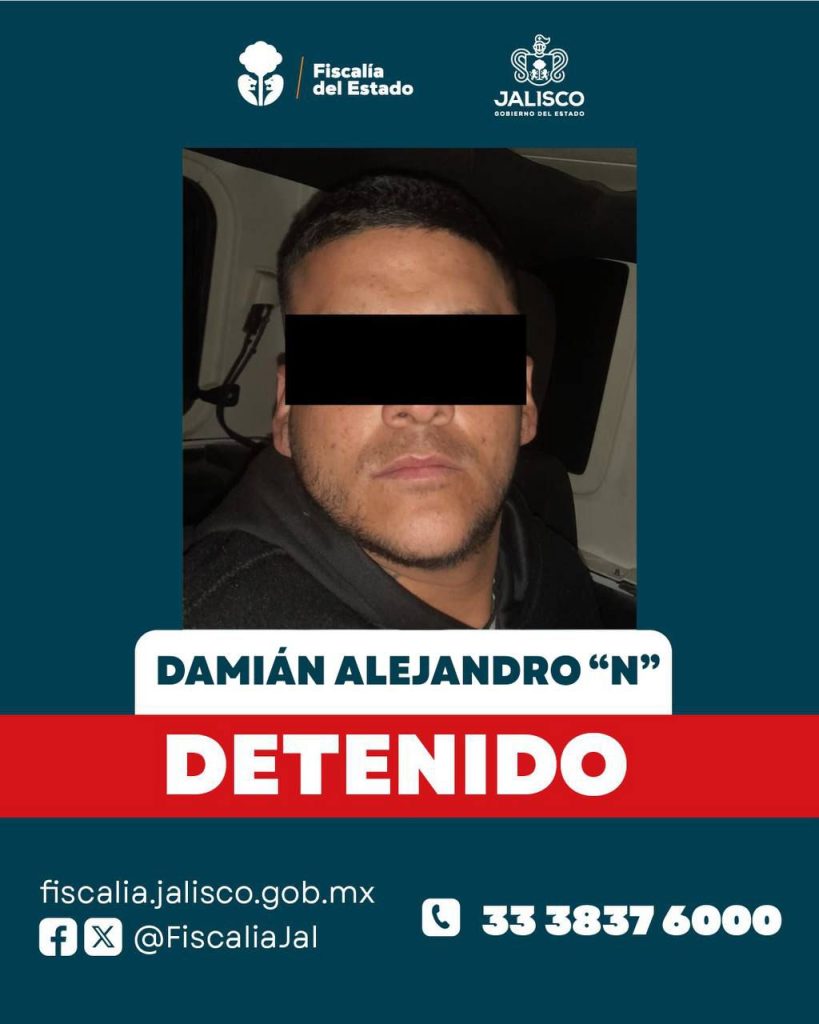 Un hombre identificado como Damián Alejandro “N” fue detenido por su presunta relación con varios homicidios, entre ellos un caso ocurrido en 2024 en el municipio de San Pedro Tlaquepaque.