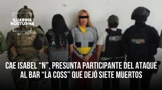 Isabel “N” fue detenida por su presunta participación en el ataque armado e incendio del bar “La Coss”, ocurrido el 18 de noviembre en la colonia Popular Coatepec, en Puebla, que dejó un saldo de siete personas muertas y cinco lesionadas.
