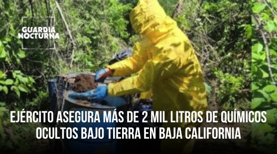 El Ejército Mexicano localizó más de 2 mil litros de precursores químicos utilizados en la elaboración de metanfetaminas, los cuales se encontraban enterrados en una zona serrana del municipio de Ensenada, Baja California. El hallazgo se realizó durante un operativo de reconocimiento efectuado por elementos del 67° Batallón de Infantería en el ejido Benito Juárez, ubicado aproximadamente a 120 kilómetros al sur del puerto.
