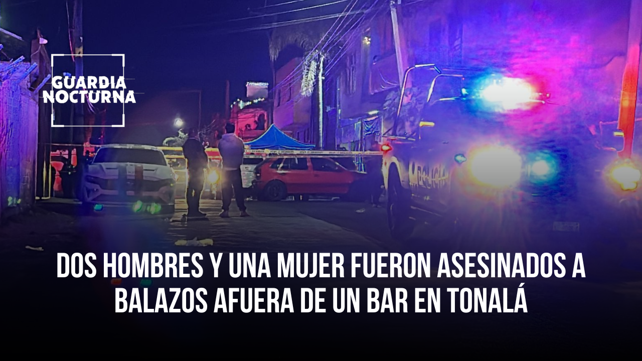 Dos hombres y una mujer fueron asesinados a balazos; además, otro hombre resultó lesionado con arma de fuego. Esto ocurrió en el cruce de Loma Dorada y División del Norte, afuera de un bar llamado «La Palmita», en la colonia Francisco Villa de Tonalá.