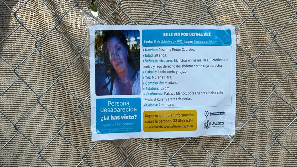 Personal de la Fiscalía del Estado de Jalisco, en coordinación con peritos del Instituto Jalisciense de Ciencias Forenses, desplegó la tarde de este día un operativo ALBA en el cruce de las calles Pedro Moreno y Penitenciaría, en la colonia Americana de Guadalajara, como parte de las acciones de búsqueda de Josefina Pintor Cabrales, una mujer de 50 años de edad reportada como desaparecida.