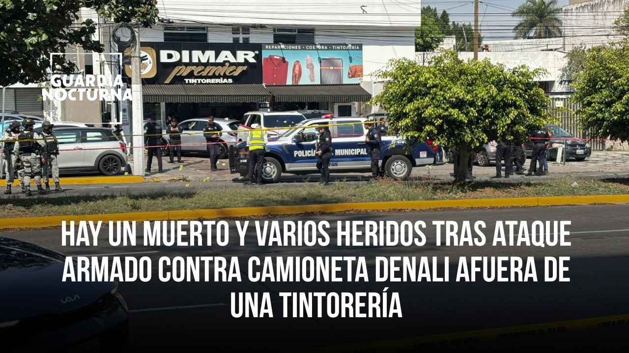 La tarde se torno violenta en el municipio de Zapopan, luego de que sobre el cruce de las avenidas Guadalupe y Patria, en la colonia Jardines de Guadalupe, sujetos armados arremetieran a tiros sobre una camioneta Denali en color blanco, esto justo afuera de una tintorería. La camioneta recubió al menos 30 imnpactos de bala, dejando como saldo a tres personas lesionadas, mismas que habrían llegado al establecimiento, se trató del hombre que conducía la camioneta y dos escoltas, mismos que fueron trasladados a un puesto de socorros para su atención.