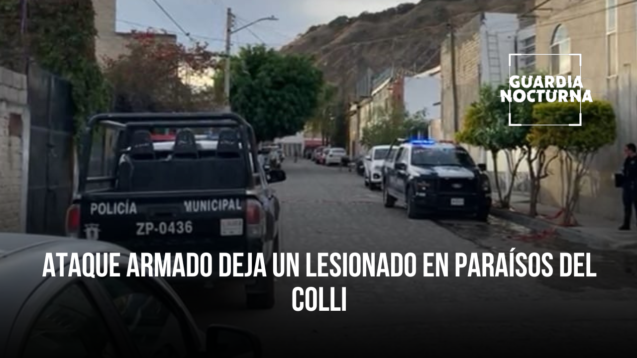 Un hombre de 34 años resultó lesionado por impacto de proyectil de arma de fuego en el cruce de las calles Mezquite y Jacarandas, en la colonia Paraísos del Colli, luego de un ataque directo registrado la tarde de este jueves.