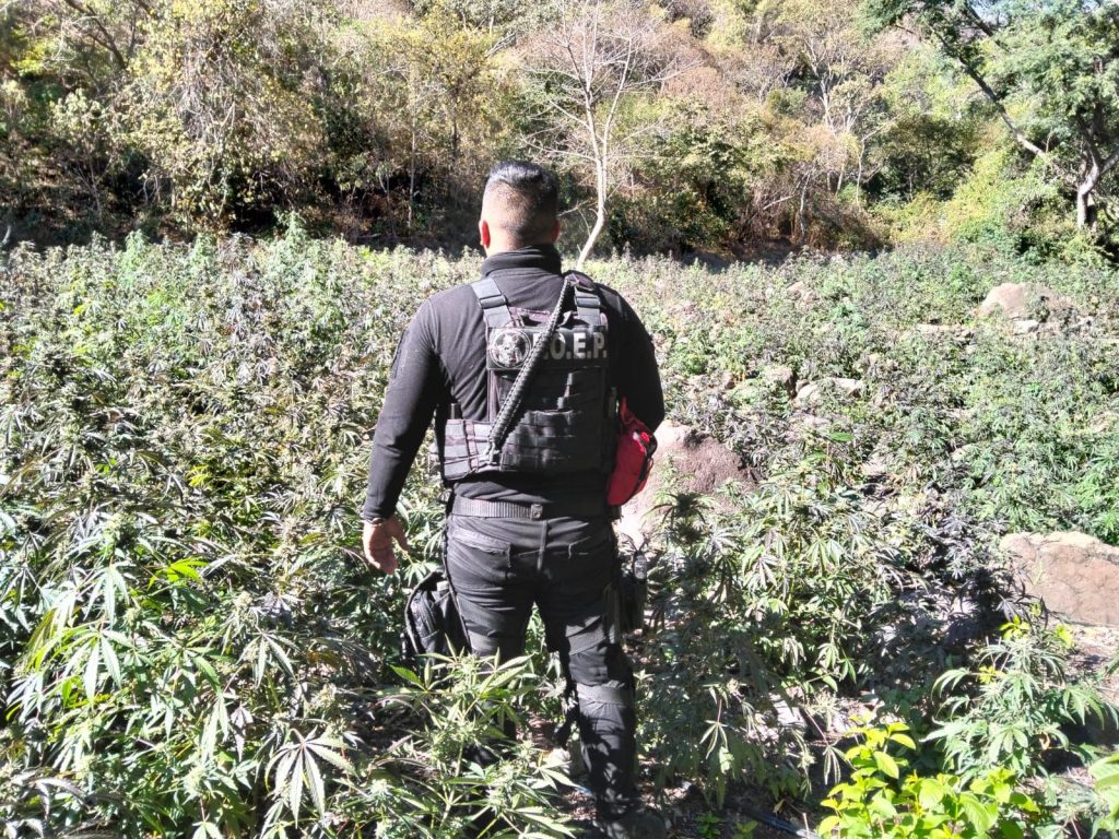 El hallazgo se realizó durante un recorrido de vigilancia en la Delegación Santa Cruz, específicamente en el camino que conecta la cabecera municipal con el poblado de El Salvador, donde los oficiales detectaron un predio con plantas que presentaban características similares a la marihuana.