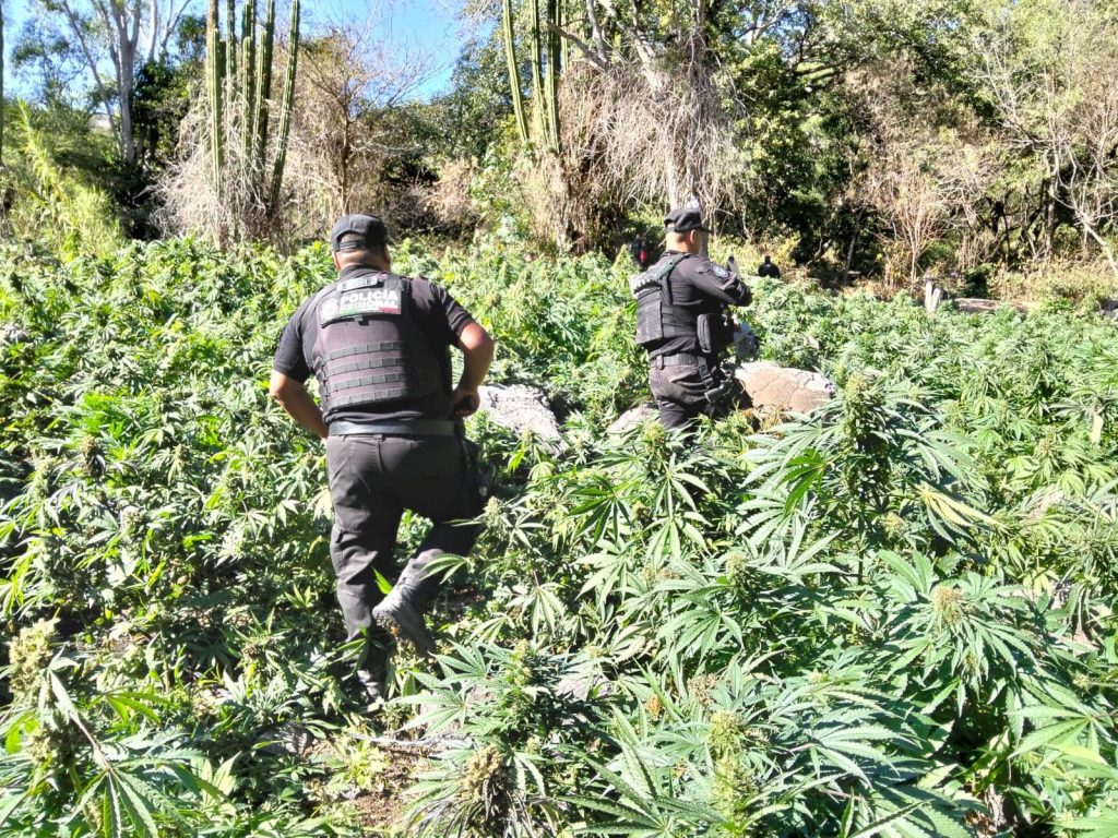 Elementos de la Policía Regional de Jalisco, en coordinación con personal de DEFENSA, localizaron y destruyeron cerca de 100 mil plantas de aparente marihuana en distintos puntos del municipio de Tequila, en la Región Valles del estado.