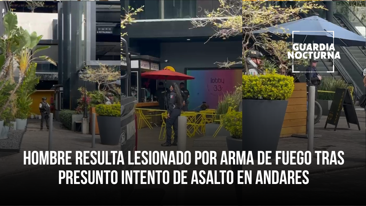 Un hombre resultó lesionado por arma de fuego luego de un presunto asalto ocurrido al interior del edificio Lobby 33, ubicado sobre avenida Patria, en la zona de Andares.