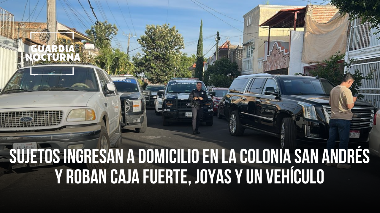 Varios sujetos ingresaron a un domicilio ubicado en el cruce de Miguel Bernal y Carlos González Peña, en la colonia San Andrés, en el municipio de Guadalajara, donde amedrentaron a dos mujeres y sustrajeron una caja fuerte, diversas joyas y un vehículo.