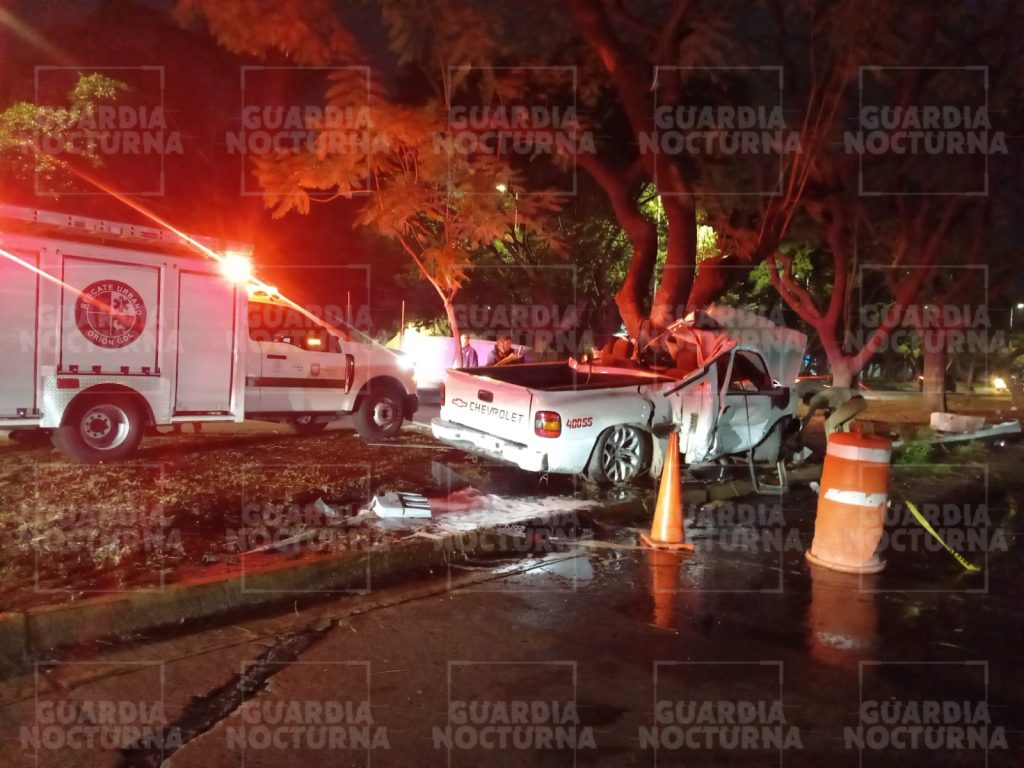 Una joven pareja que se dirigía a su domicilio resultó involucrada en un aparatoso accidente vial la madrugada de este domingo sobre la calzada Lázaro Cárdenas, al cruce con las avenidas 8 de Julio y Gobernador Curiel, justo a las afueras de la cervecería Cuauhtémoc Moctezuma, en Guadalajara.