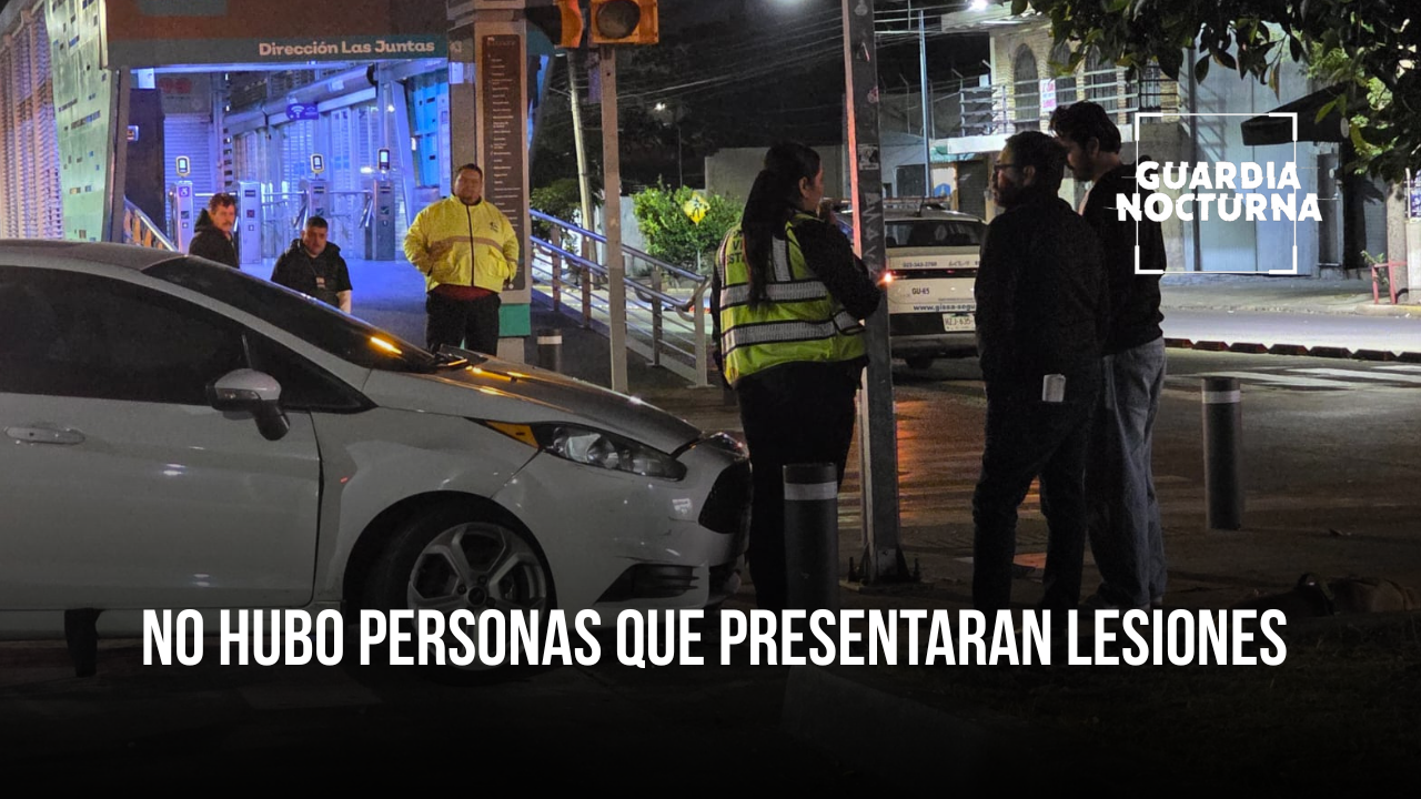 Un percance vial se registró en el cruce de la calzada Independencia y la calle Volcán Tuxtla, en la colonia Panorámica Huentitán, Guadalajara, donde un automovilista terminó impactado contra la infraestructura urbana.