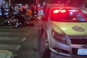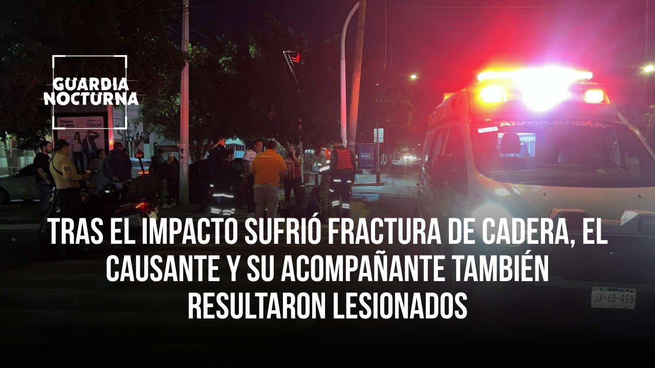 La noche de este sábado, un aparatoso percance vial tuvo lugar sobre el cruce de las avenidas Plutarco Elías Calles y Puerto Melaque, en Guadalajara. Todo se suscitó luego de que un hombre de aproximadamente 46 años de edad, que bajaba de una unidad del transporte público en la zona, fue embestido por una motocicleta que era conducida por un menor de aproximadamente 16 años de edad y quien viajaba acompañado de su padre.