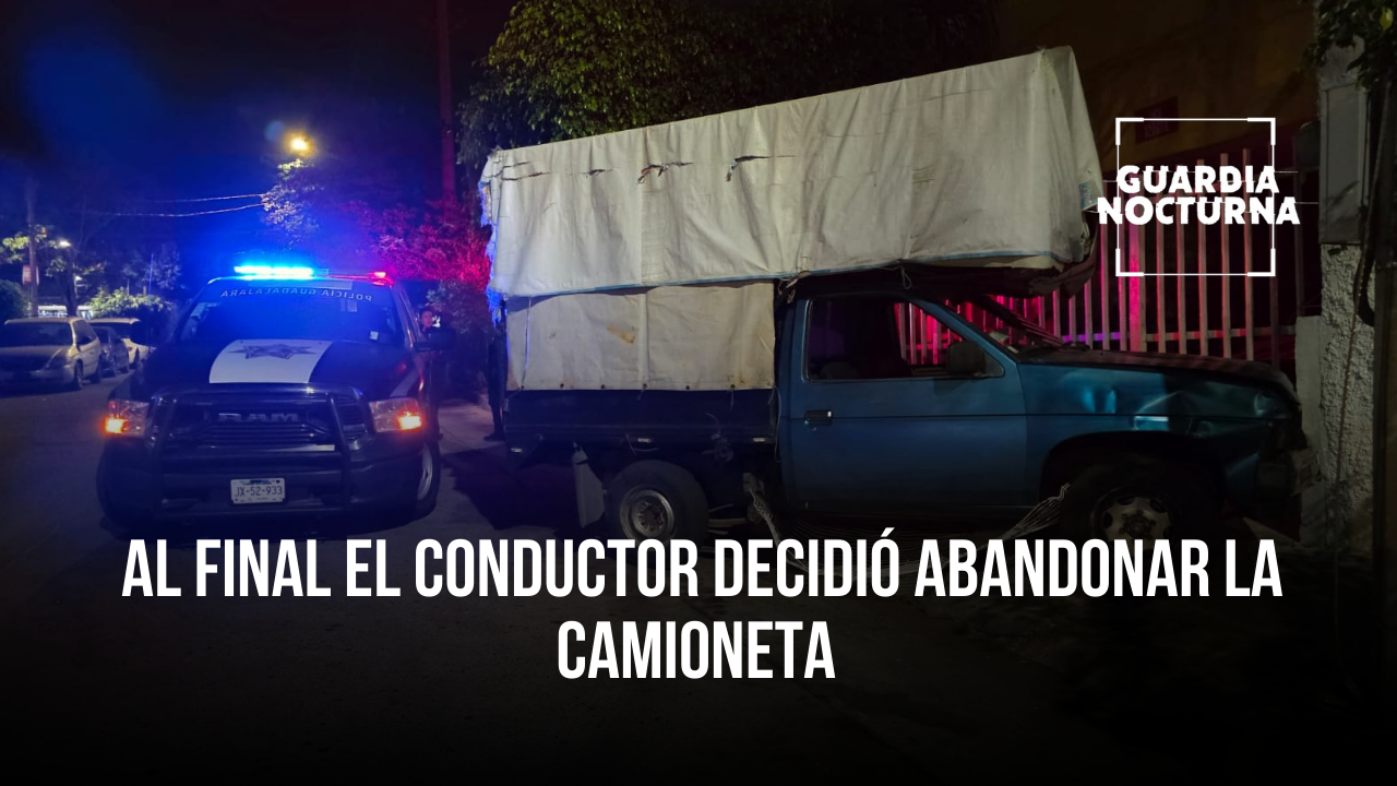 La detención forzosa ocurrió en el cruce de las calles Kilimanjaro y Monte Líbano, en la colonia Independencia de Guadalajara. Esto sucedió porque una parte de la estructura metálica de la malla quedó enredada entre las llantas y el chasis, lo que provocó que el conductor perdiera el control y terminara estrellándose contra una finca.