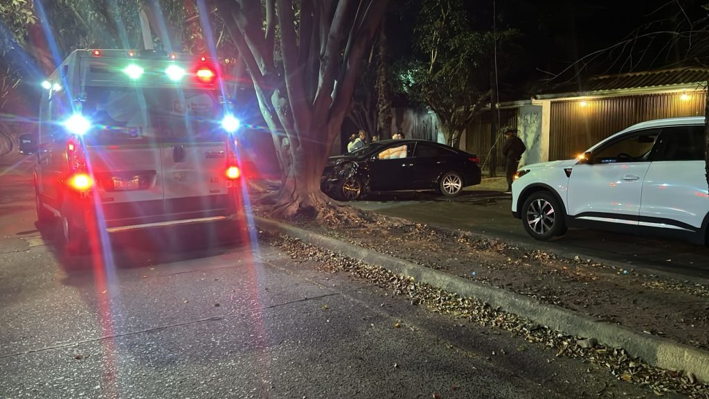 Choque de automóvil contra un árbol en calles de la colonia Lomas de Country