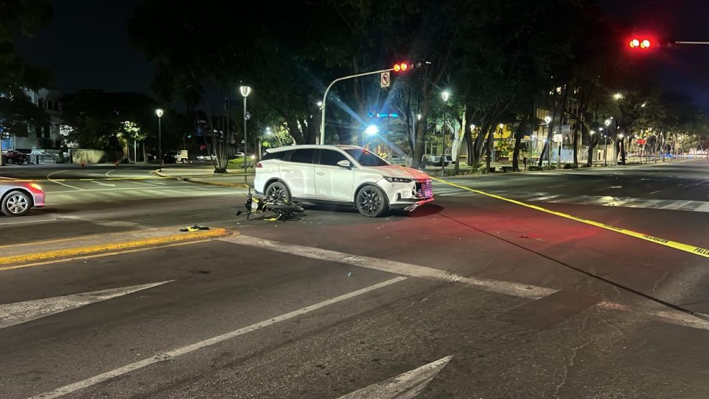 Se registró la noche del viernes en el conocido cruce de las avenidas De los Arcos y Vallarta, en el municipio de Guadalajara un percance vial. El incidente fue ocasionado por un «semaforazo», que involucró a una camioneta y una motocicleta que colisionaron luego de que presuntamente uno de los conductores no respetó la señal de alto.