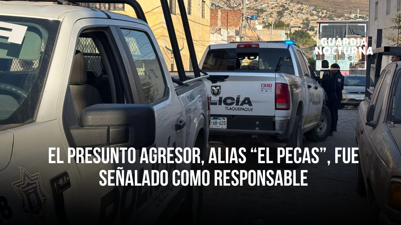 Al arribo de la unidad, los oficiales localizaron a un masculino con herida a la altura del hombro derecho, consciente pero con sangrado activo. En el sitio se encontraban varios vecinos y menores de edad, quienes señalaron que la agresión derivó de una pelea entre particulares. El presunto responsable fue identificado por testigos con el alias de “El Pecas”.