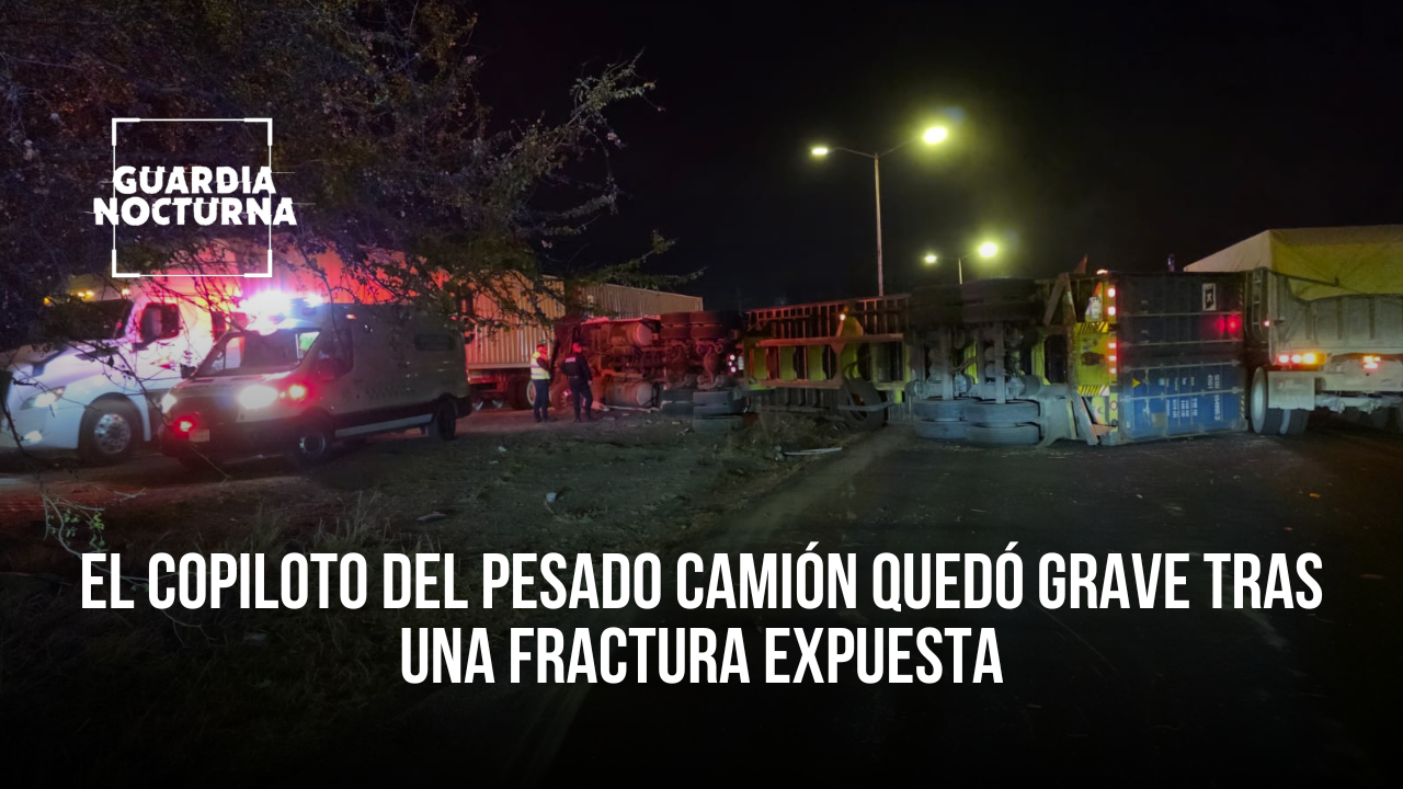 El saldo del percance es de dos personas lesionadas; el operador del transporte resultó con heridas mínimas, mientras que su copiloto se reporta en estado grave. De acuerdo con los primeros reportes, el acompañante sufrió una fractura expuesta y la amputación parcial de una de sus extremidades inferiores, por lo que fue necesario regular su estado para trasladarlo de urgencia a un puesto de socorros.