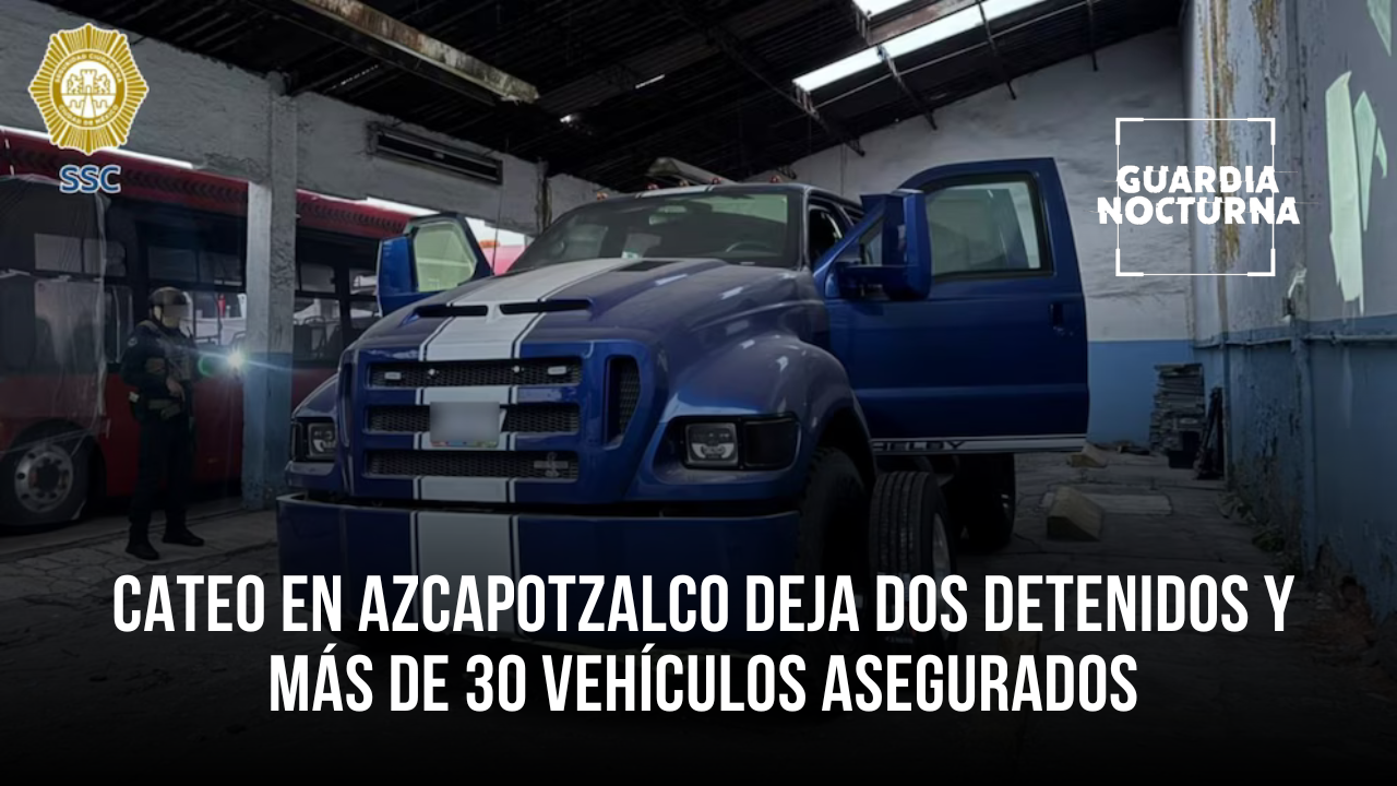 Autoridades de la Ciudad de México aseguraron un inmueble que presuntamente era utilizado como taller para modificar vehículos tipo “camioneta monstruo” en la alcaldía Azcapotzalco. Durante el operativo fueron detenidas dos personas y se localizaron más de 30 unidades de transporte público foráneo con placas con reporte de robo.