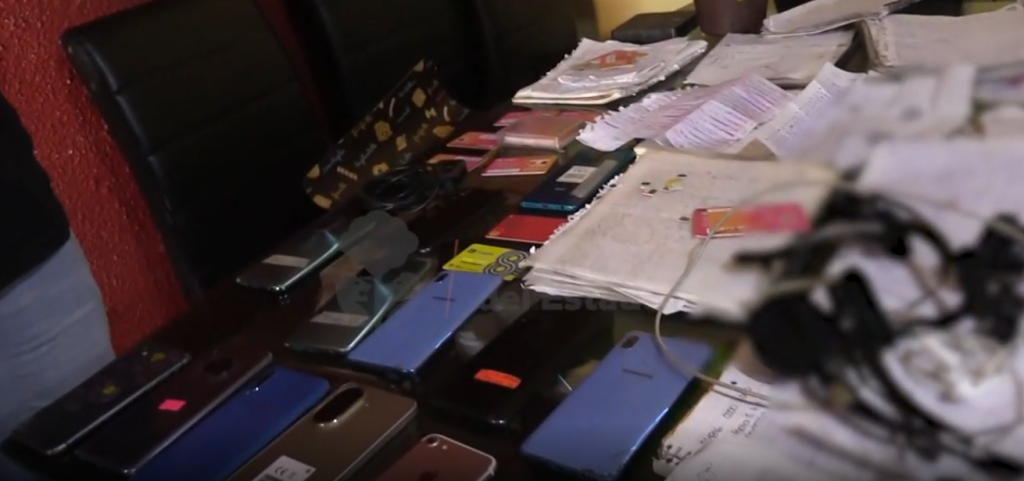 En el lugar fueron asegurados diversos indicios, entre ellos teléfonos celulares, auriculares con micrófono, chips telefónicos, módems, una terminal de cobro electrónico y libretas con nombres y números telefónicos.
