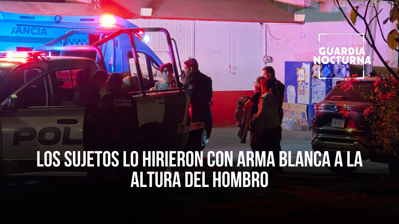 Se reportó en un inició, una persona herida con arma de fuego, posteriormente, a la llegada de autoridades informaron que la víctima fue herida con arma blanca en la zona de la espalda, a la altura del hombro.