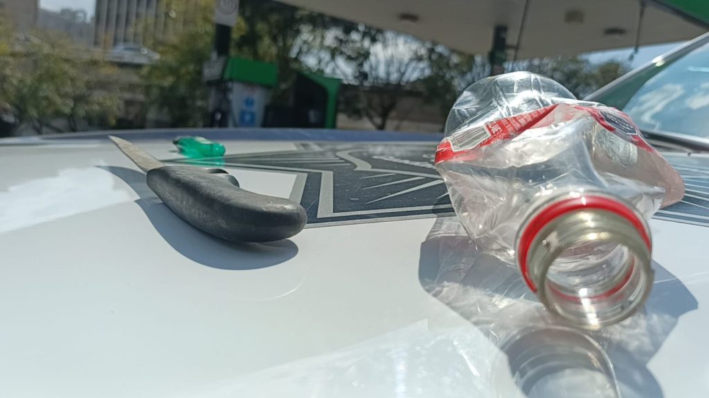 Ante el riesgo, se pidió apoyo al C5 Guadalajara y a unidades de emergencia. Elementos municipales llegaron rápidamente y lograron detener al hombre cuando intentaba salir del sitio. Durante la revisión se le encontró una botella, un encendedor y un cuchillo.