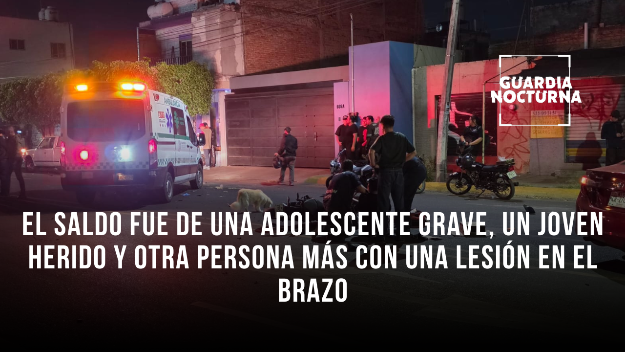 Un fuerte accidente se registró en la colonia Lomas de Tlaquepaque, donde un choque frontal entre dos motocicletas dejó un saldo de tres personas lesionadas, entre ellas una menor de edad en estado crítico.