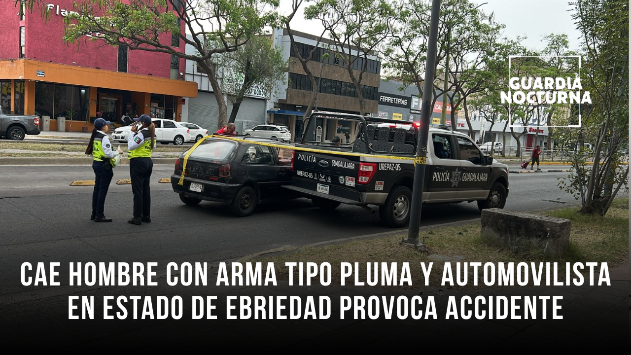 Detienen a sujeto armado durante revisión; conductor ebrio choca contra patrulla en Guadalajara