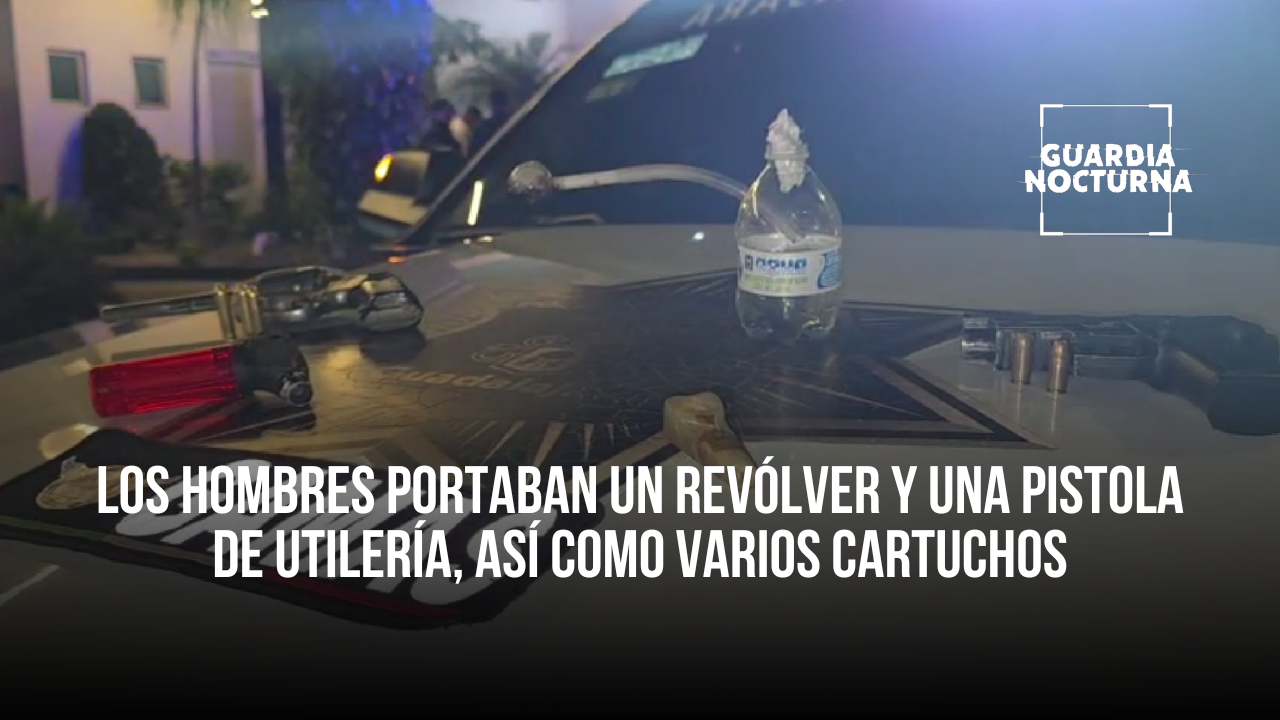 Durante la inspección, los elementos localizaron entre las pertenencias de los sujetos un revólver calibre .38 especial y una pistola de utilería. Además, se aseguraron tres cartuchos útiles del mismo calibre que el revólver y dos cartuchos adicionales calibre .9mm.