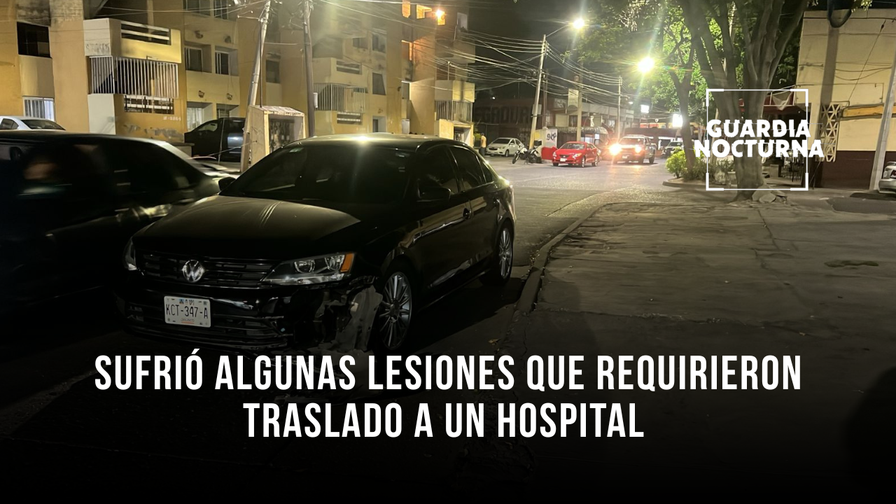 Un hombre de entre 40 a 45 años de edad, quien se desplazaba en un patín eléctrico, protagonizó un percance vial tras chocar de frente contra un vehículo de color negro. El incidente ocurrió en la intersección de las calles Manuel M. Ponce y Medrano, dentro de la colonia San Rafael, en el municipio de Guadalajara.