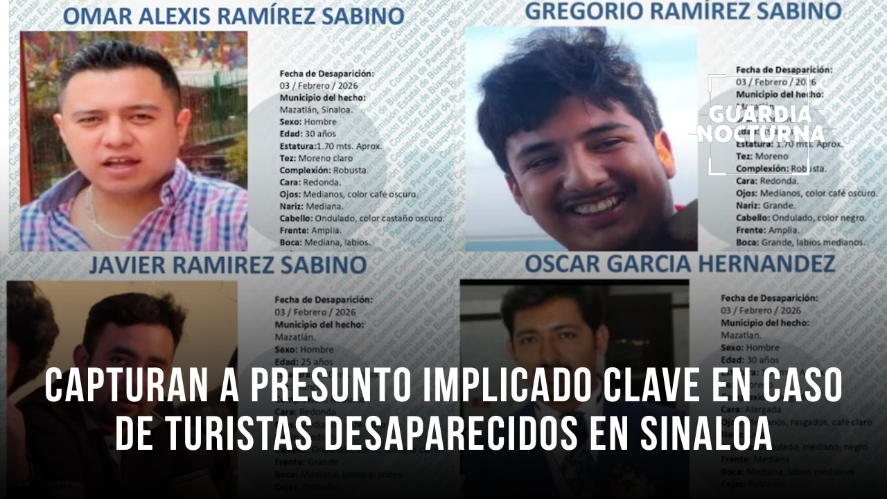 Autoridades federales informaron que ya suman 10 personas detenidas por su presunta participación en el secuestro de cuatro turistas ocurrido el 3 de febrero en Mazatlán, Sinaloa, mientras continúan los operativos para dar con su paradero.